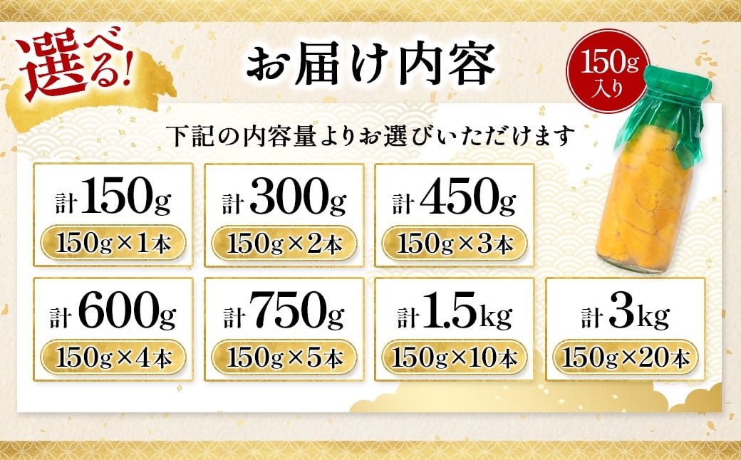 無添加生うに大瓶 (150g) 選べる本数 1本 ~ 20本 岩手県産 ミョウバン不使用 _ 岩手県 宮古市 うに ウニ 雲丹 生うに 寿司 すし 牛乳瓶