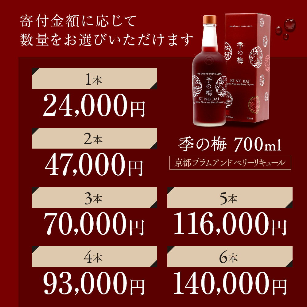 - 【ふるさと納税】【京都蒸溜所】季の梅 京都プラムアンドベリーリキュール 《選べる本数》700ml×1~6本 [京都 お酒 ジン ドライジン スピリッツ 人気 おすすめ こだわり 蒸留 蒸留酒 蒸留所]
