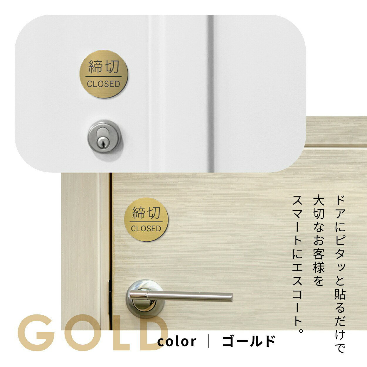 - 【ふるさと納税】締切 ドアプレート サイン [締切/CLOSED] 丸型 シルバー ゴールド ブロンズ サインプレート ドア 扉 案内標示 標識板 クローズ しめきり まる ステンレス調 真鍮風 銅板風 屋外対応 シール式 メール便 送料無料