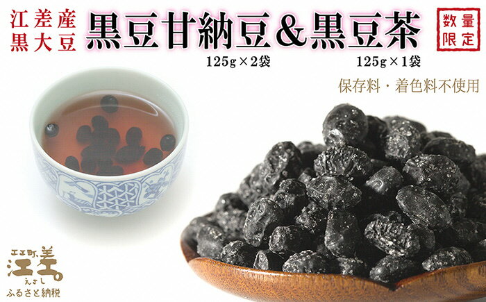 - 【ふるさと納税】江差産黒大豆《光黒》使用「黒豆甘納豆&黒豆茶セット」 こだわりの自然素材 保存料・着色料不使用 黒大豆 甘納豆 ガラクトオリゴ糖 黒大豆ポリフェノール イソフラボン 和菓子