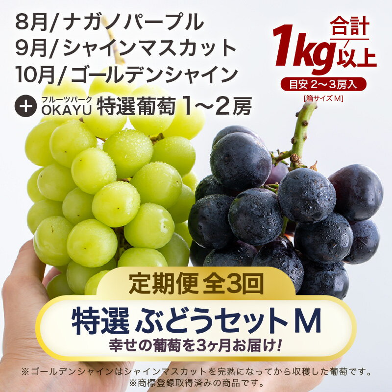 【ふるさと納税】【先行予約】【訳あり】<全3回定期便>特選 ぶどうセットM(8月・9月・10月)1kg以上(各月2~3房)/ 葡萄 ナガノパープル シャインマスカット ゴールデン シャイン 品種 おまかせ あわら 農家おすすめ ※2026年8月より順次発送