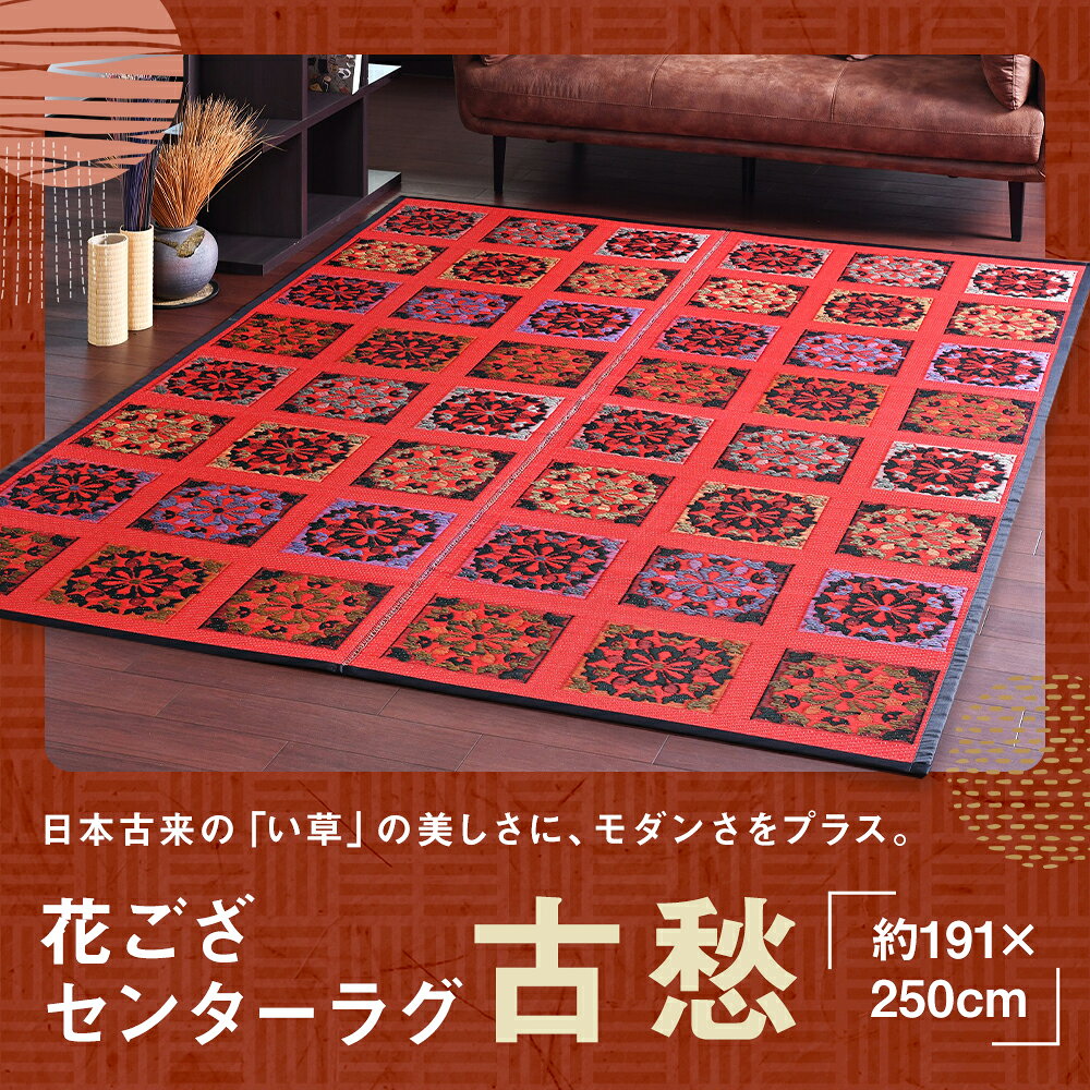 【ふるさと納税】花ござセンターラグ 古愁 約191×250cm 1枚 国産 花ござ ござ ゴザ 茣蓙 畳 い草 ラグ マット 敷物 カーペット インテリア モダン 和室 洋室 福岡県 筑後市 送料無料