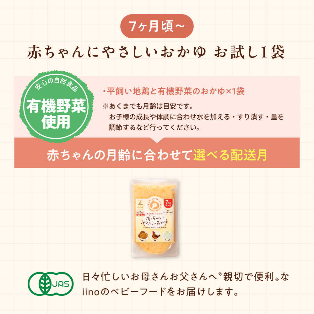 - 【ふるさと納税】離乳食【先行予約】【1月下旬から順次発送】【お試し1袋】7ヶ月頃からの『赤ちゃんにやさしいおかゆ』(平飼い地鶏と有機野菜のおかゆ)1袋 大洲市/iino assemble[AGAA021] ベビーフード 赤ちゃん用品 お食い初め 国産 おすすめ 人気 4000円 四千円