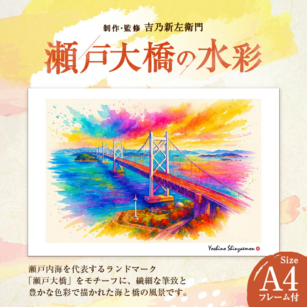 【ふるさと納税】瀬戸大橋の水彩 1枚 A4サイズ版 吉乃新左衛門 現代アート 倉敷の風景 瀬戸内海の景色 瀬戸大橋 atelier SHINZAEMON 作画 原画コピー オリジナル額縁付 旅の思い出 ふるさとへの思い 部屋の雰囲気を最適化 絵画 インテリア 装飾 美術品 送料無料