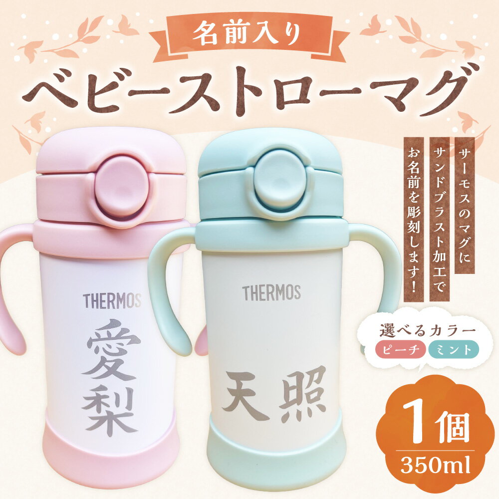 - 【ふるさと納税】<選べるカラー>名前入りベビーストローマグ ピーチ / ミント 350ml まほうびんのベビーストローマグ ステンレス鋼 サンドブラスト加工 水筒 生活雑貨 小物 ギフト お子様用 誕生日 プレゼント 出産祝い 贈り物 熊本県 水上村 送料無料