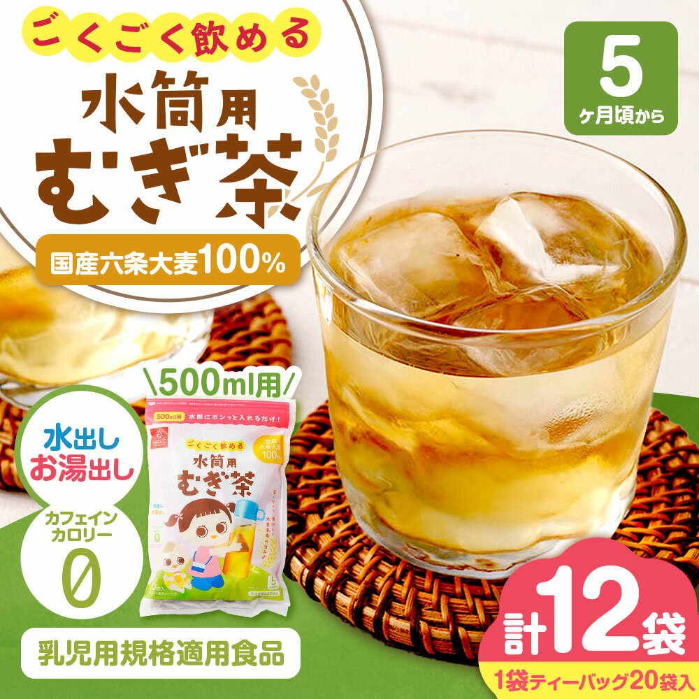 【ふるさと納税】ごくごく飲める水筒用麦茶 計2.4kg(200g(20袋)×12袋) 500ml 水筒用 麦茶 むぎ茶 お茶 六条大麦 浅煎り焙煎 テトラ型ティーバッグ 飲料 国産 山梨県 中央市 送料無料