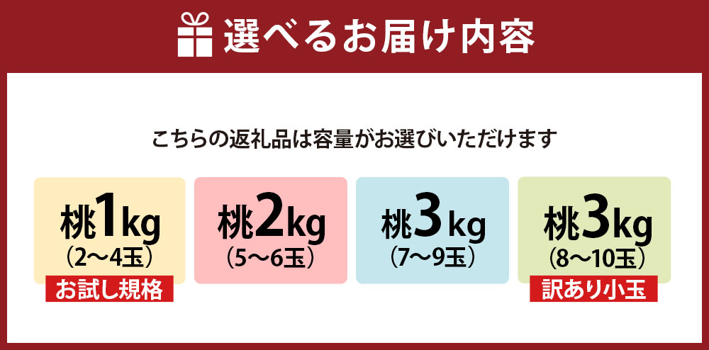 - 【ふるさと納税】桃 1~3kg【選べる容量】 もも モモ 果物 果実 くだもの フルーツ お取り寄せ 日川白鳳 夢みずき あかつき なつっこ 川中島白桃 冷蔵 山梨県 中央市 送料無料【2026年6月下旬~8月下旬発送予定】