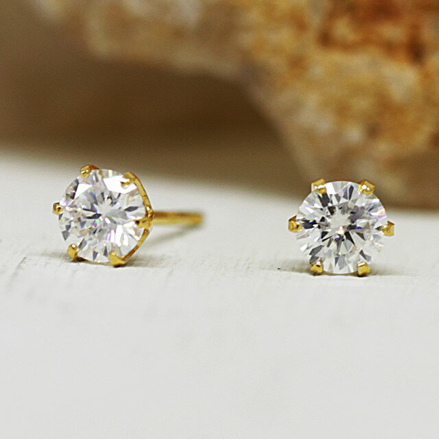 - 【ふるさと納税】< 甲府ジュエリー > ピアス ジュエリー レディース アクセサリー 合成 モアサナイト 計0.4ctUP K18 18金 イエローゴールド 6本爪 スタッド 一粒 4mm プレゼント ギフト ジュエリーケース付 保証書付 k248-033