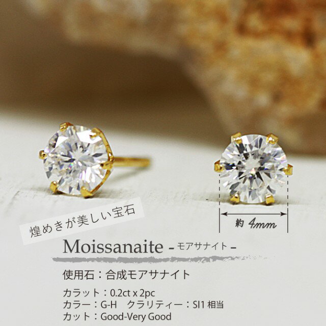 【ふるさと納税】< 甲府ジュエリー > ピアス ジュエリー レディース アクセサリー 合成 モアサナイト 計0.4ctUP K18 18金 イエローゴールド 6本爪 スタッド 一粒 4mm プレゼント ギフト ジュエリーケース付 保証書付 k248-033