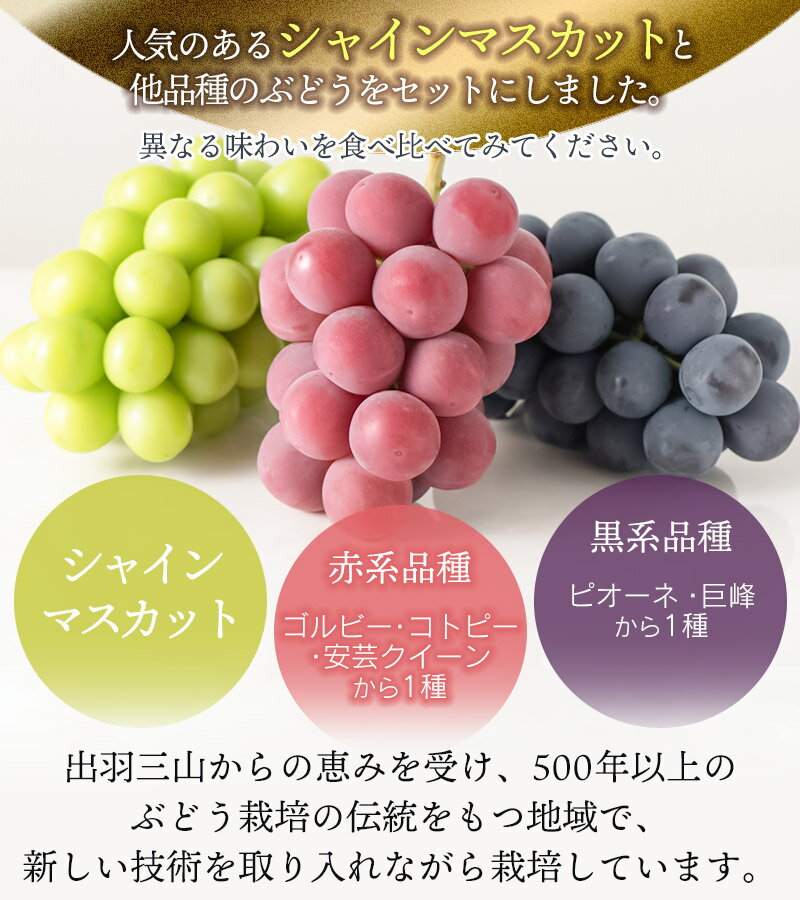 - 【ふるさと納税】【令和8年産先行予約】大粒ぶどう3種セット 約2kg シャインマスカット+赤系1種+黒系1種 | 大玉 葡萄