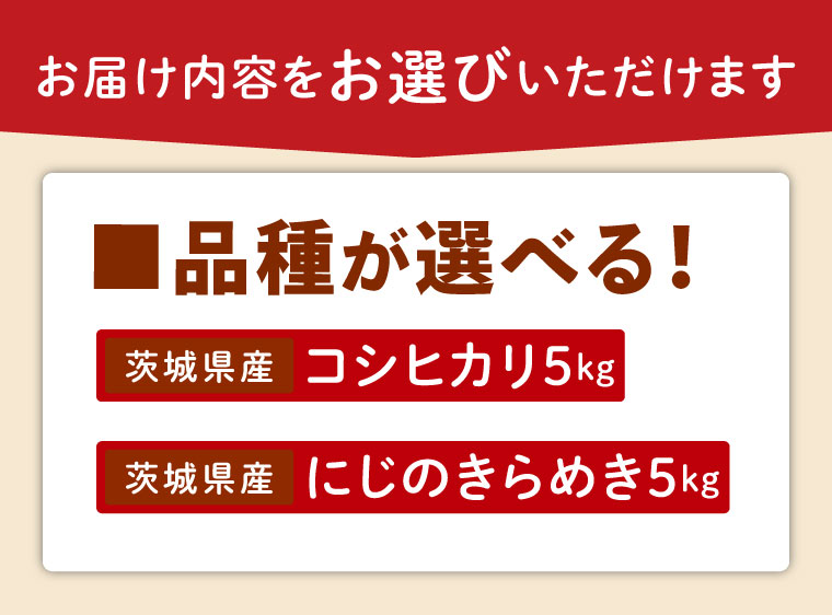 - 【ふるさと納税】【選べる品種・配送回数】茨城県産コシヒカリ・にじのきらめき 5kg(精米 or 無洗米)×1回~12回【精米 定期便 お米 米 こめ コメ ごはん 白米 阿見町 茨城県 茨城県産 茨城県産米 安心 安全 送料無料 国産 人気 数量限定 高評価】