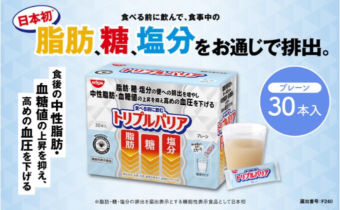 - 【ふるさと納税】【選べる容量・配送回数】トリプルバリア プレーン 15本 30本 60本 90本/単品・2ヶ月~12ヶ月定期便 | 日清食品 サプリメント サプリ nisshin 機能性表示食品 中性脂肪 血糖値 血圧 水に溶かす ドリンク スティック 健康
