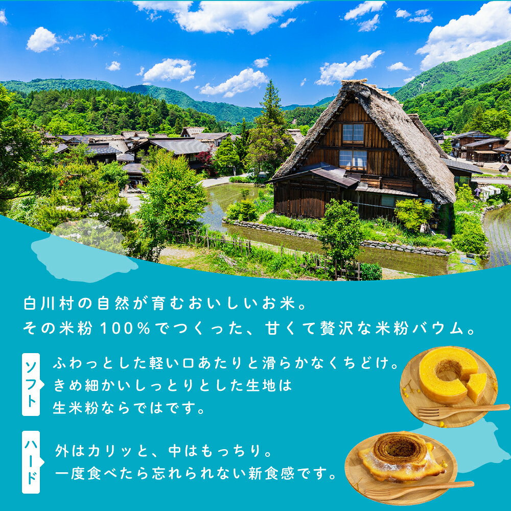 - 【ふるさと納税】米粉ばうむ バウムクーヘン 米粉バームクーヘン バウム ソフト 御菓子 スイーツ デザート おやつ時間 子ども キッズ 洋菓子 伝統 世界遺産 白川郷 観光 おすすめ お土産 プレゼント エガオヤカフェ 6~9月発送 [S944]
