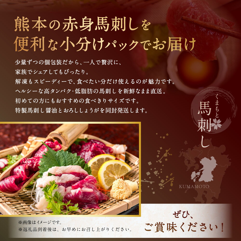 - 【ふるさと納税】赤身馬刺し 計約200g(約50g×4パック) 醤油・おろししょうが付き 馬刺 馬肉 お肉 赤身 高タンパク 低脂肪 小分け 個包装 食べきりサイズ しょうゆ 生姜 冷凍 熊本県 あさぎり町 送料無料