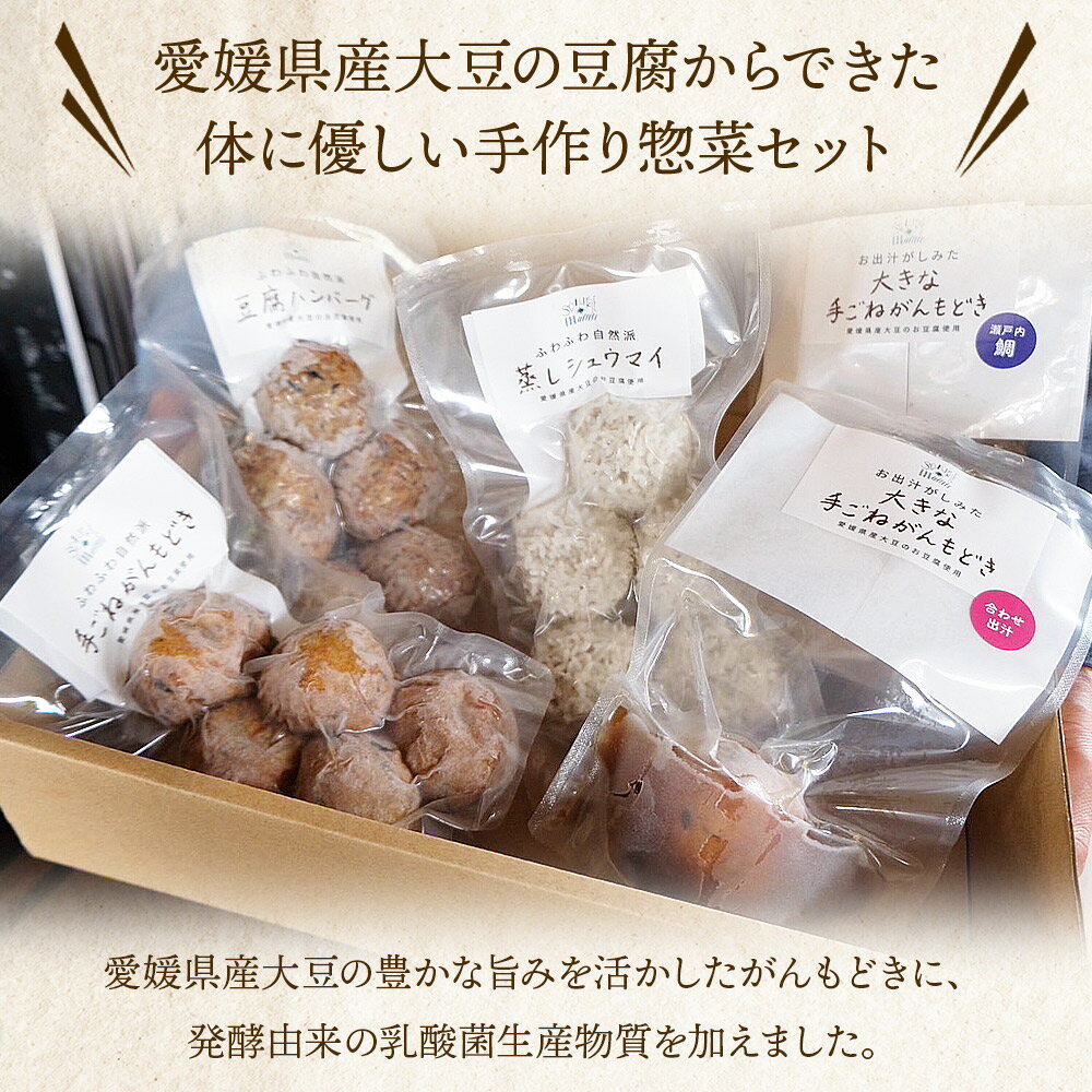 【ふるさと納税】<豆腐惣菜セット 計5袋 1/3/6回>※翌月末迄に第1回目を出荷 選べる 定期便 配送回数 詰め合わせ 手作り グルメ がんもどき ハンバーグ シュウマイ とうふ 和食 ふわふわ おかず おつまみ 煮物 国産 伝統料理 ソイリクル SOILIKKLE 愛媛県 西条市【冷凍】