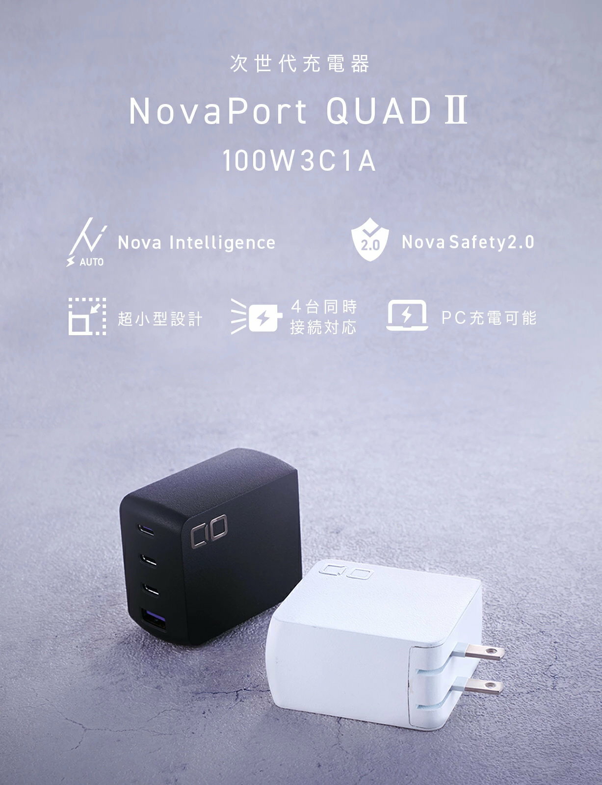 - 【ふるさと納税】NovaPort QUAD II 100W 3C1A(黒/白)|急速充電器 PD [世界最小級 CIO独自技術 NovaIntelligence NovaEngine搭載] 4ポート USB-C×3 + USB-A×1 ACアダプター コンセント 軽量 iPhone 15 Android Galaxy MacBook iPad向け ノートPC [2527-2529]