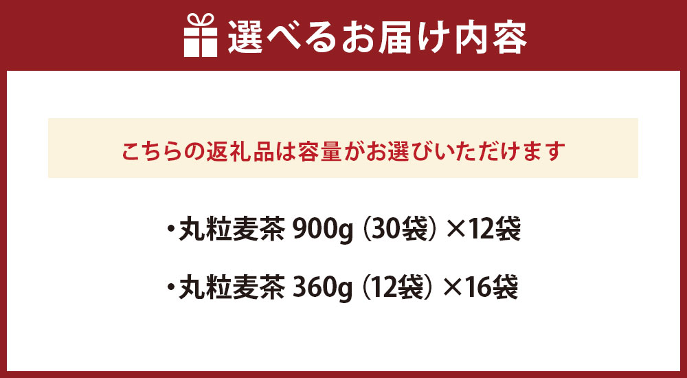 - 【ふるさと納税】<選べる内容量>丸粒麦茶 計10.8kg(900g(30袋)×12袋) / 計5.76kg(360g(12袋)×16袋) 麦茶 むぎ茶 お茶 六条大麦 三角テトラ型パック 飲料 国産 山梨県 中央市 送料無料