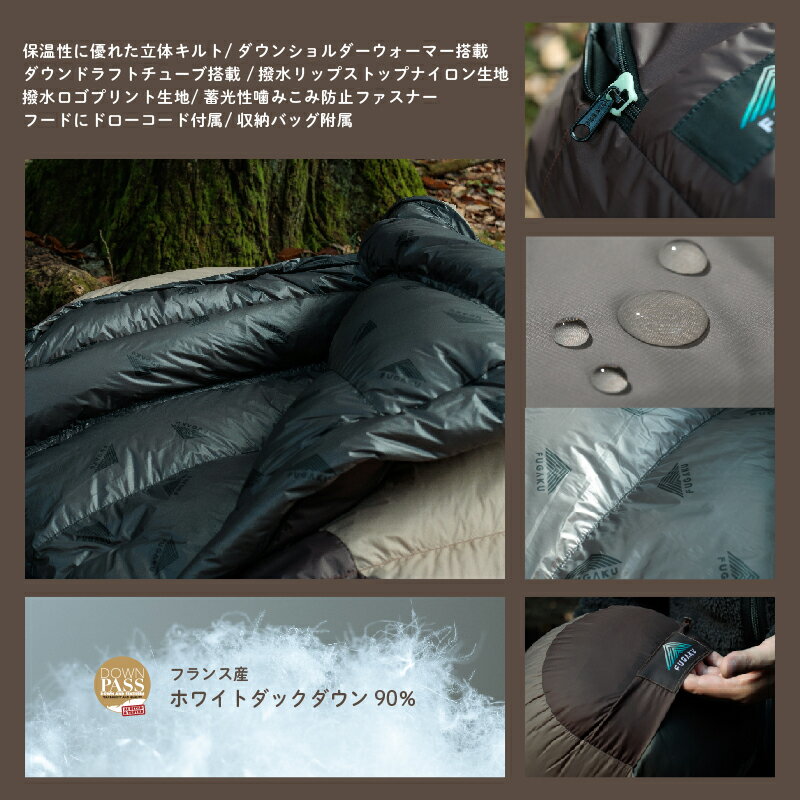 【ふるさと納税】【FUGAKU】MUMMY SLEEPING BAG 850g マミー型寝袋 ダウンシュラフ ベージュ || 清潔感 暖かい 軽い 防災 天然素材 国内生産 オールシーズン アウトドア
