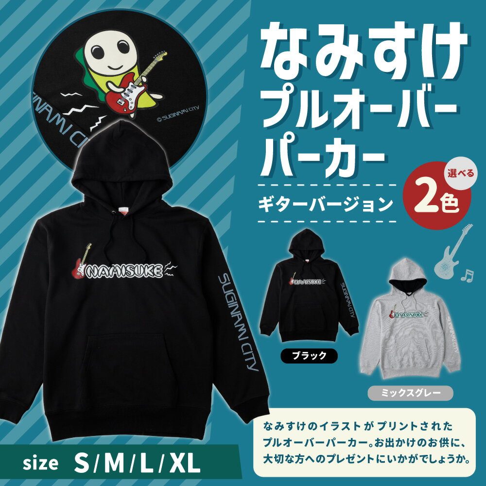 【ふるさと納税】<選べるカラー・サイズ>なみすけプルオーバー パーカー ブラック / ミックスグレー ギターバージョン <S~XLよりお選びください>1枚 綿100% パイル素材 キャラクター グッズ ファッション 衣類 衣料 秋冬 ルームウェア 送料無料