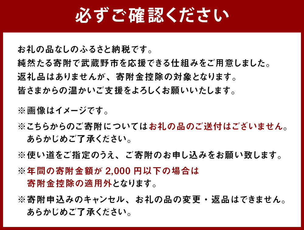 - 【ふるさと納税】【返礼品なし】武蔵野市への寄附(返礼品はありません) 一口 1,000円 千円 東京都 武蔵野市 寄附のみ 支援 応援 ふるさと応援 地域支援 地域活性化 買い回り