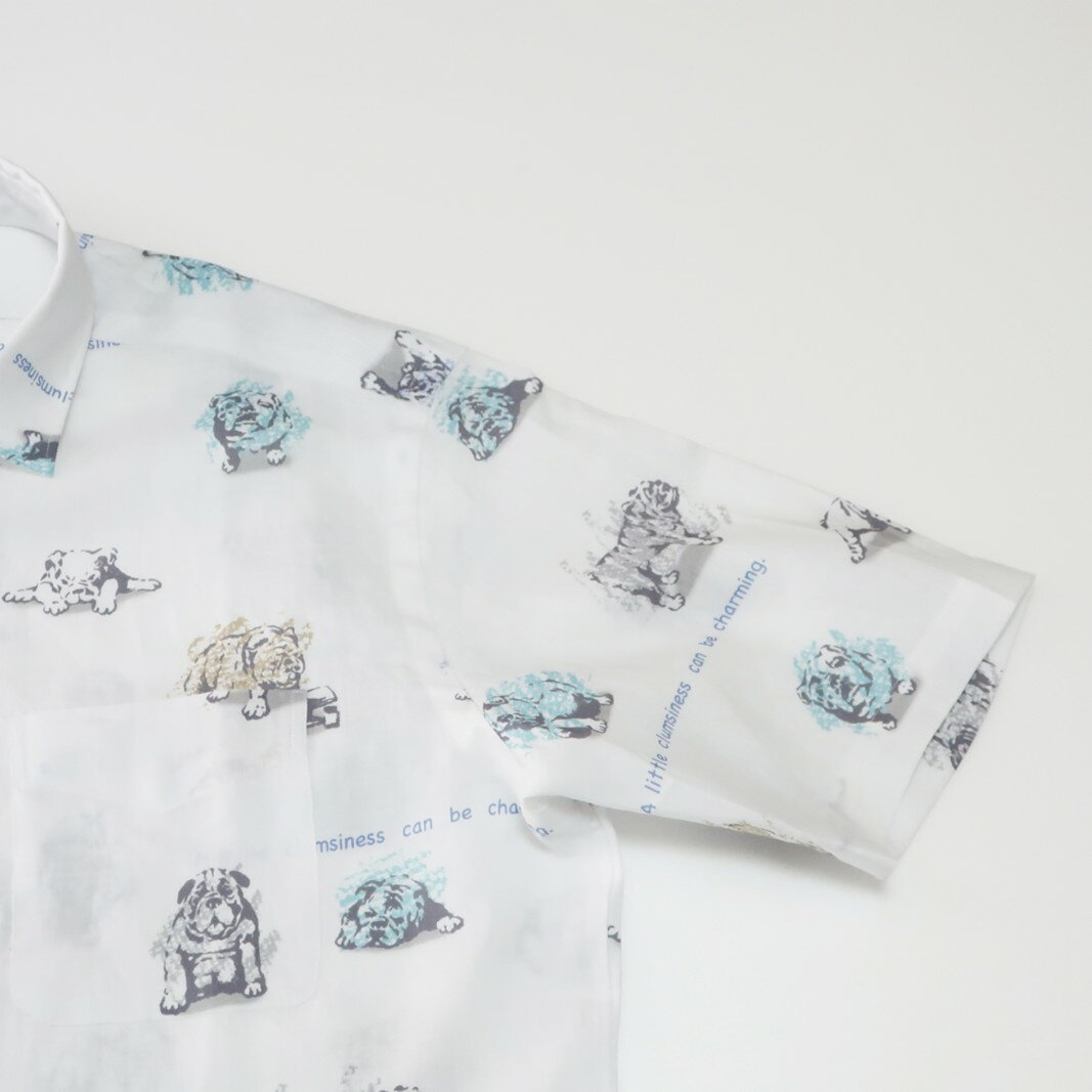 - 【ふるさと納税】CLOFT 麻100%半袖プリントシャツ”ブルドック柄”犬柄(C/#18ホワイト×チャコール)M 新宿区 シャツ カジュアル オリジナル 柄 上質 こだわり プレゼント 半袖 犬好き ブルドッグ ブルドック 白 ホワイト チャコール 0139-024-S07-1