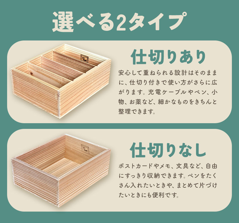 - 【ふるさと納税】スギノハコ kasane 選べる 仕切りあり 仕切りなし 有限会社折重《60日以内に出荷予定(土日祝除く)》【配送不可地域有】河内町 秋田杉 小物入れ 国産 収納 ボックス 手作り 工芸品 オフィス デスク 送料無料