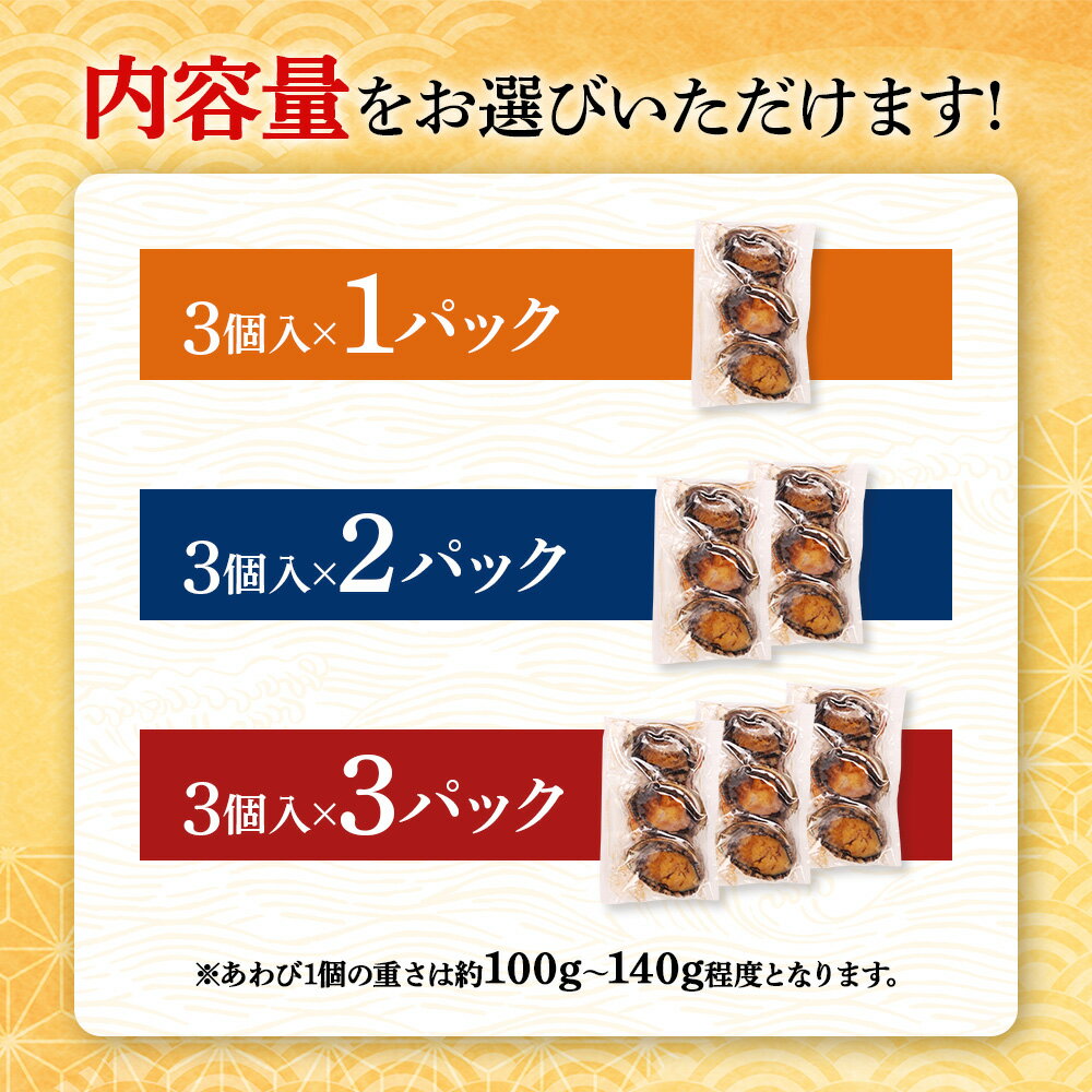 【ふるさと納税】【選べる内容量!】【北海道】天売島産 天然蝦夷あわび 大サイズ 3個入×1〜3パック (1個 約100g〜140g) | 天然 あわび 殻付き 海鮮 おつまみ 魚介類 高級 食材 冷凍 刺身 バター焼き グルメ 特別 凝縮 北海道 天売島 お取り寄せ マリナシーフーズ 羽幌町