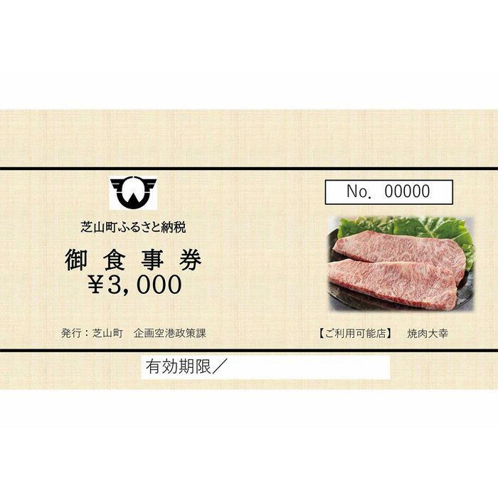 - 【ふるさと納税】 焼肉大幸 御食事券 6000円分 / お食事券 チケット 利用券 商品券 クーポン券 夜ご飯 晩御飯 ディナー 観光 お出かけ 温泉 ゴルフ 芝山町内 千葉県 No.084 ディナー 外食 家族利用 ペア利用 肉料理 焼き肉屋 グルメチケット ギフト券 焼肉好き 週末外食