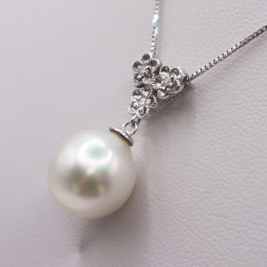 - 【ふるさと納税】1956 【真珠科学研究所オーロラフェニックス鑑別書付】K18WG 南洋白蝶真珠11.9mm ダイヤモンド0.043ct ペンダントネックレス