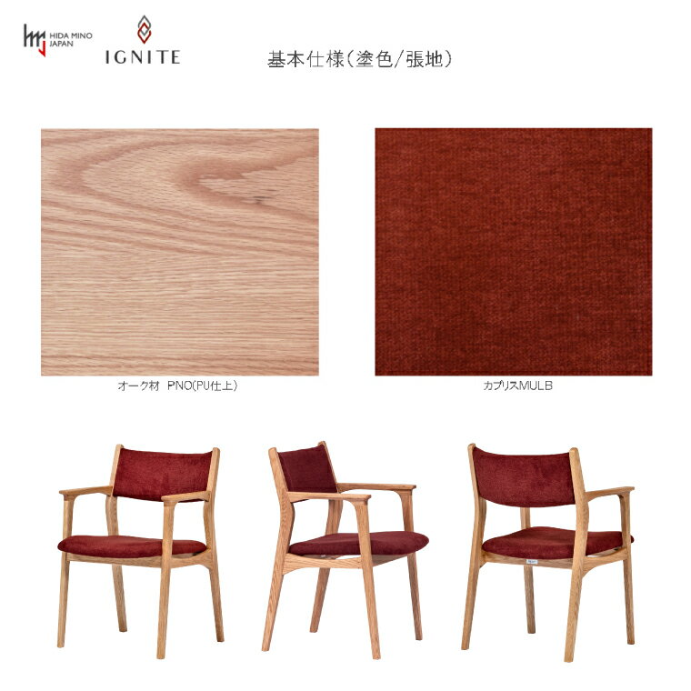 【ふるさと納税】IGNITE アームチェア JIG-DC3242O オーク材PNO/カプリスMULB 塗色・張地変更可 椅子 イス 北欧 単品 肘付 飛騨美濃JAPAN