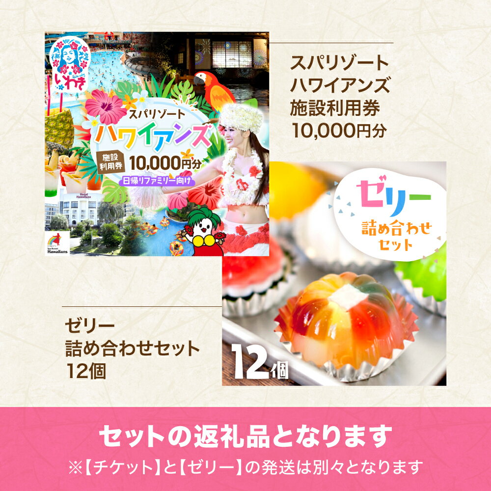 【ふるさと納税】スパリゾート ハワイアンズ ファミリー向け 王道日帰りプラン 施設利用券10,000円分(5,000円分×2枚)+ゼリー12個詰め合わせセット | 利用チケット 入場券 ホテルハワイアンズ モノリスタワー ウイルポート フラダンス プール 福島県 いわき市 | ZZ027