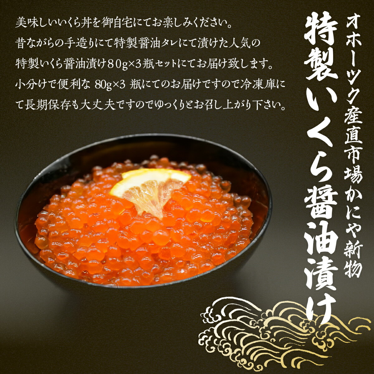 【ふるさと納税】かにや新物特製いくら醤油漬け80g×3瓶セット 【 ふるさと納税 人気 おすすめ ランキング いくら イクラ いくら醤油 醤油漬け いくら醤油漬け イクラ醤油 ikura いくら丼 いくら丼 小分け 便利 海鮮 オホーツク 北海道 網走市 送料無料 】 ABAO2201