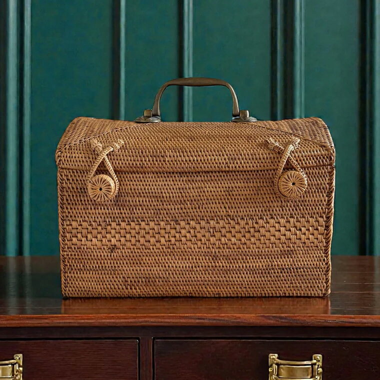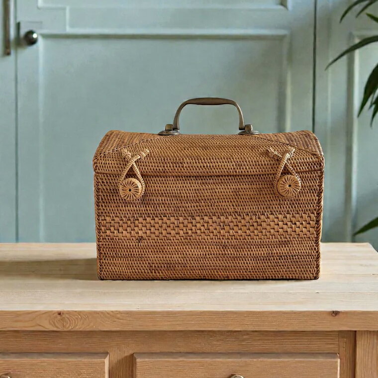 - 【ふるさと納税】アタ 真鍮 取っ手 ドーム形 蓋付き バスケット 無地 格子 模様 W30×D20×H20 おすすめ 雑貨 収納 かご ケース ボックス 箱 物入れ インテリア グッズ オリジナル 手作り プレゼント ギフト お菓子 薬 キャンプ アウトドア かわいい 便利 数量限定 ATABRASS