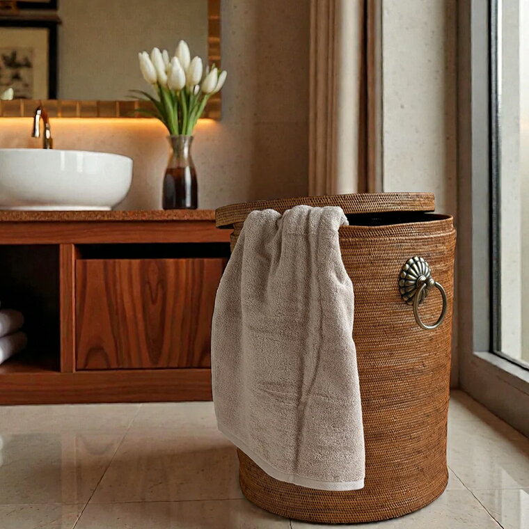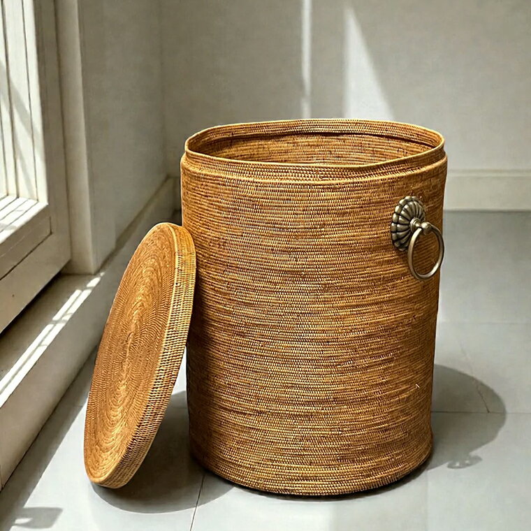 - 【ふるさと納税】アタ 真鍮 取っ手 蓋付き 円柱 バスケット 無地 φ40×H50 雑貨 収納 かご 大きい ケース バスケット 箱 物入れ ランドリーボックス インテリア 洗濯物 玄関 プール グッズ オリジナル 手作り おすすめ プレゼント ギフト 職人 便利 数量限定 ATABRASS