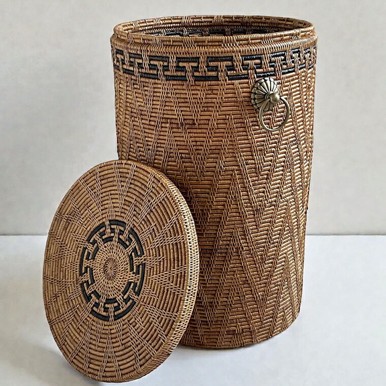 - 【ふるさと納税】アタ 真鍮 取っ手 蓋付き 円柱 バスケット 模様あり φ30×H50 ふた 雑貨 収納 かご ケース バスケット 箱 物入れ インテリア オリジナル 手作り おすすめ リビング テーブル ランドリーボックス プレゼント ギフト おしゃれ 職人 便利 数量限定 ATABRASS