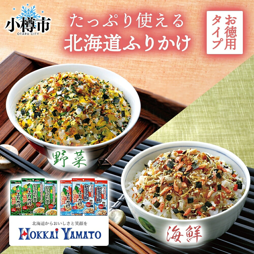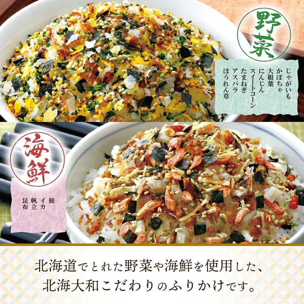 - 【ふるさと納税】北海道ふりかけ 2種 (野菜 、 海鮮) 各3袋 計6袋 (合計270g) / ふりかけ 調味料 野菜ふりかけ 海鮮ふりかけ お徳用サイズ セット 魚介 ビタミンA カルシウム 食物繊維 食品 ご飯 ご飯のお供 北海道 小樽市 常温 送料無料