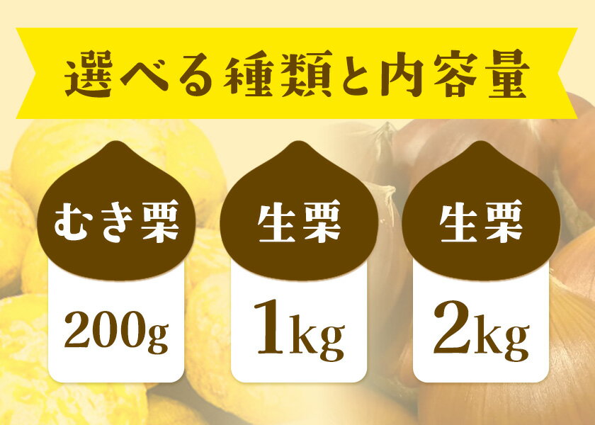 - 【ふるさと納税】栗 選べる種類と内容量 むき栗 200g 生栗 1kg 2kg とくちゃん農園《30日以内に出荷予定(土日祝除く)》熊本県 菊池市 栗 くり 熊本県産 秋の味覚 果物 くだもの フルーツ デザート ご飯