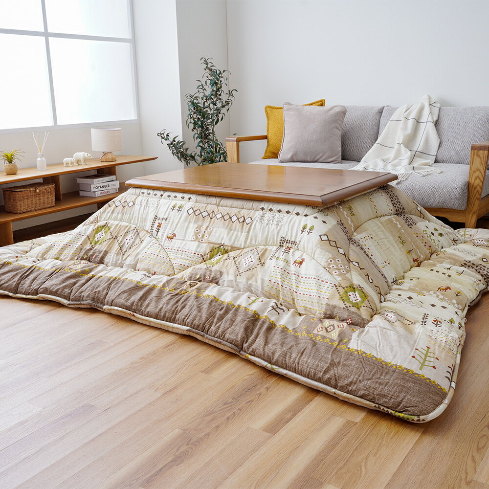 - 【ふるさと納税】<選べるカラー・サイズ>手織り風ギャベデザイン アムルこたつ布団 掛敷セット 掛布団・敷布団 各1枚 ベージュ / グレー 正方形 長方形 掛け布団 敷き布団 ふとん 炬燵 コタツ 棉100% コットン フランネル生地 かわいい 冬 あったか 家具 日本製 送料無料