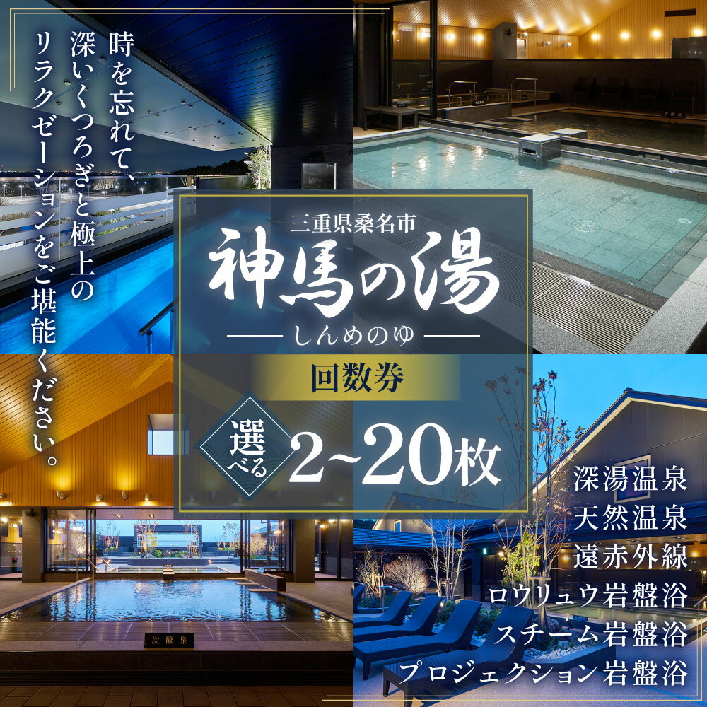 【ふるさと納税】<選べる枚数>神馬の湯 回数券 2枚 / 3枚 / 4枚 / 5枚 / 6枚 / 9枚 / 10枚 / 20枚 深湯温泉 天然温泉 遠赤外線サウナ ロウリュウ岩盤浴 スチーム岩盤浴 プロジェクション岩盤浴 露天風呂 入浴券 施設利用券 商品券 チケット 旅行 日帰り 送料無料