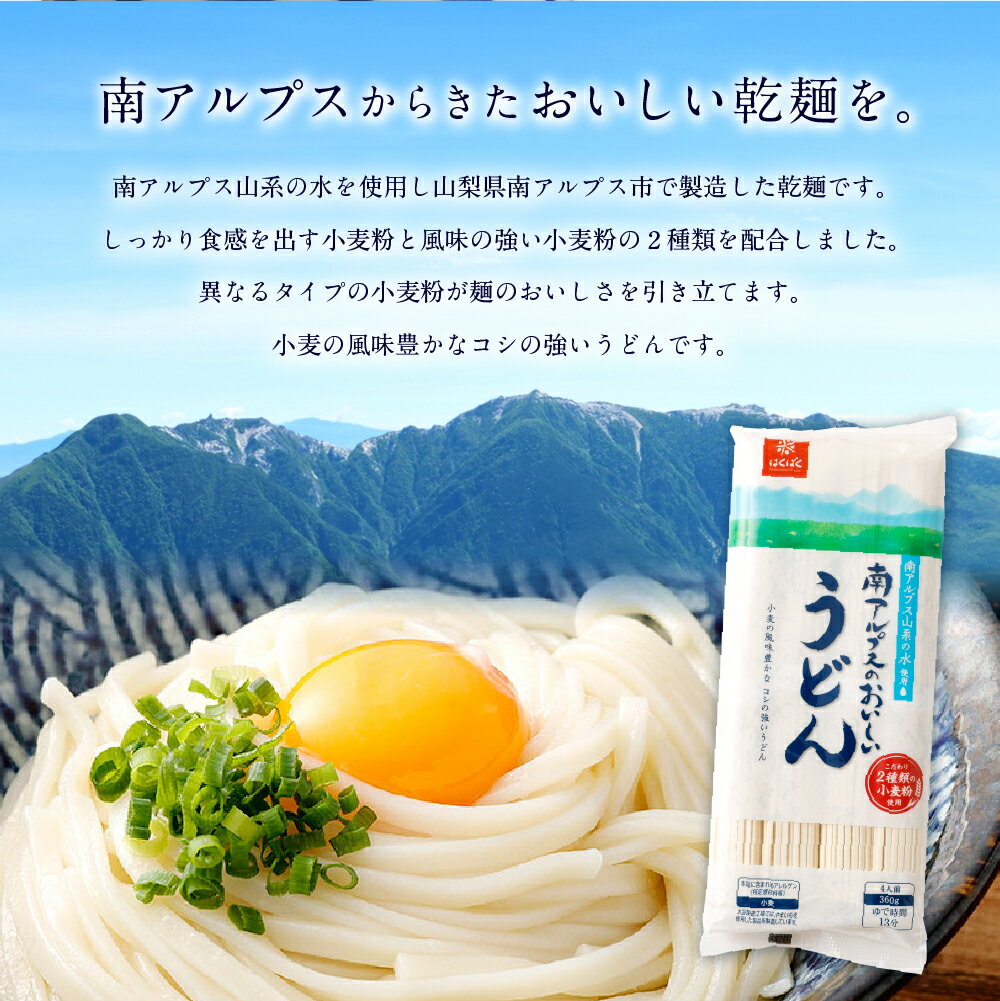 - 【ふるさと納税】南アルプスのおいしいうどん 計4.32kg(360g×12袋) うどん 麵類 乾麵 小麦粉 惣菜 国産 山梨県 中央市 送料無料