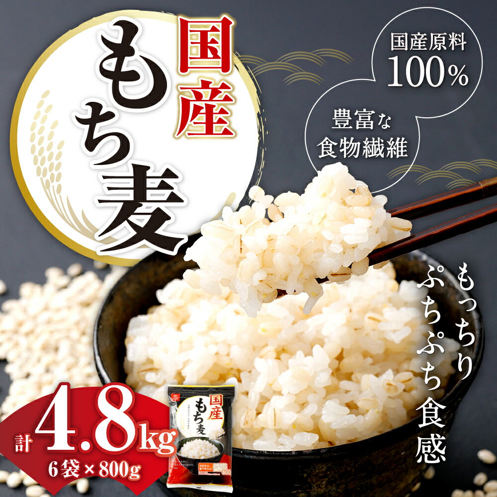 - 【ふるさと納税】国産もち麦 計4.8kg(800g×6袋) もち麦 もちむぎ 大麦 むぎ ムギ 麦 穀物 食物繊維 国産 山梨県 中央市 送料無料