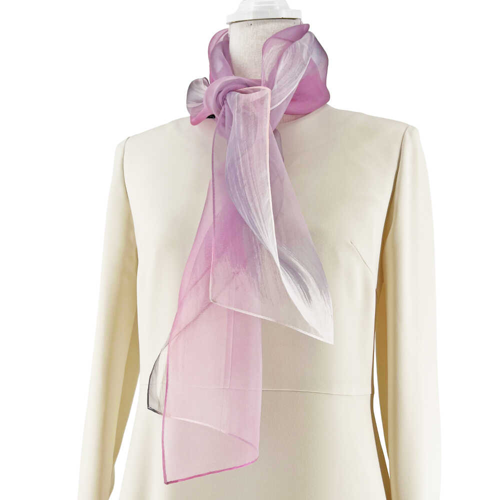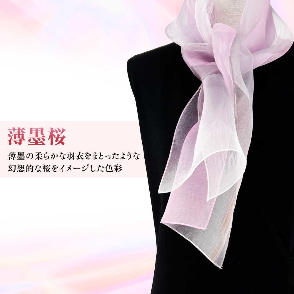 - 【ふるさと納税】スカーフ 美濃友禅 【シルクスカーフ】 NAOE KAWAMURA ー薄墨桜ー ストール ショール 雑貨 小物 人気 染色 グラデーション 上品 高級感 エレガント フォーマル カジュアル サステナブル ハンドメイド ギフト 岐阜市 / 河村尚江デザイン事務所[ANDE007]