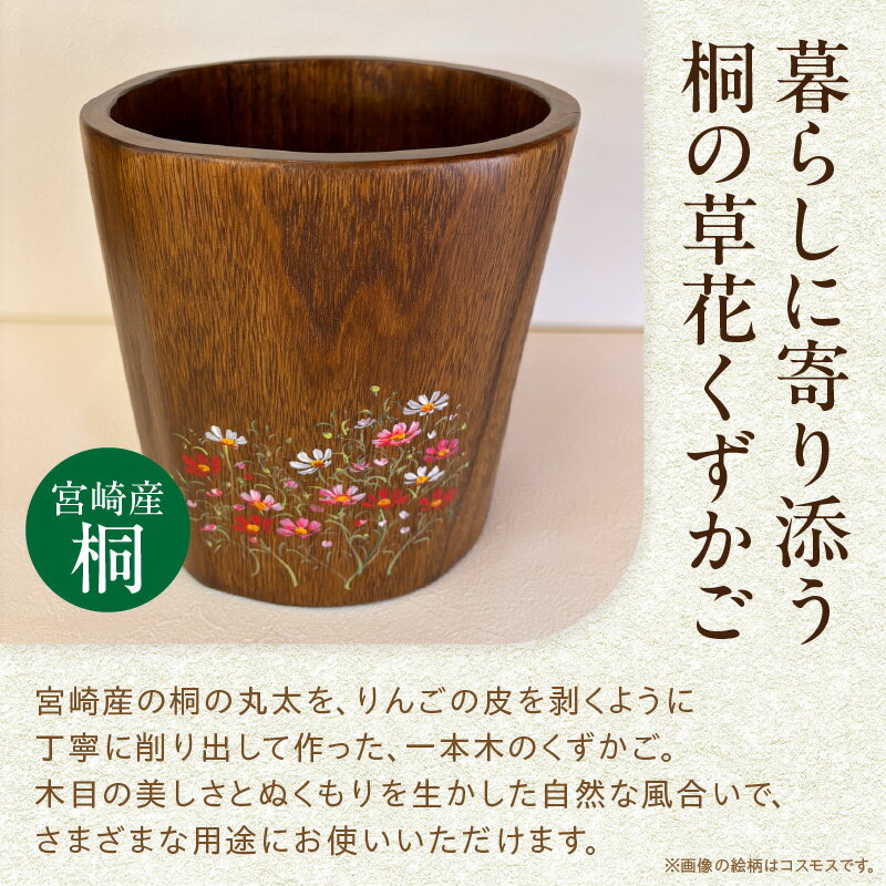 【ふるさと納税】桐の草花くずかご 丸型 インテリア 雑貨 日用品 ゴミ箱 くず入れ 木工品 工芸品 マルチボックス ダストボックス 絵柄 イージーオーダー オーダー 桐 木目調 木目 木製 木 ウッド おしゃれ シンプル リビング 寝室 キッチン ハンドメイド 宮崎県 宮崎市