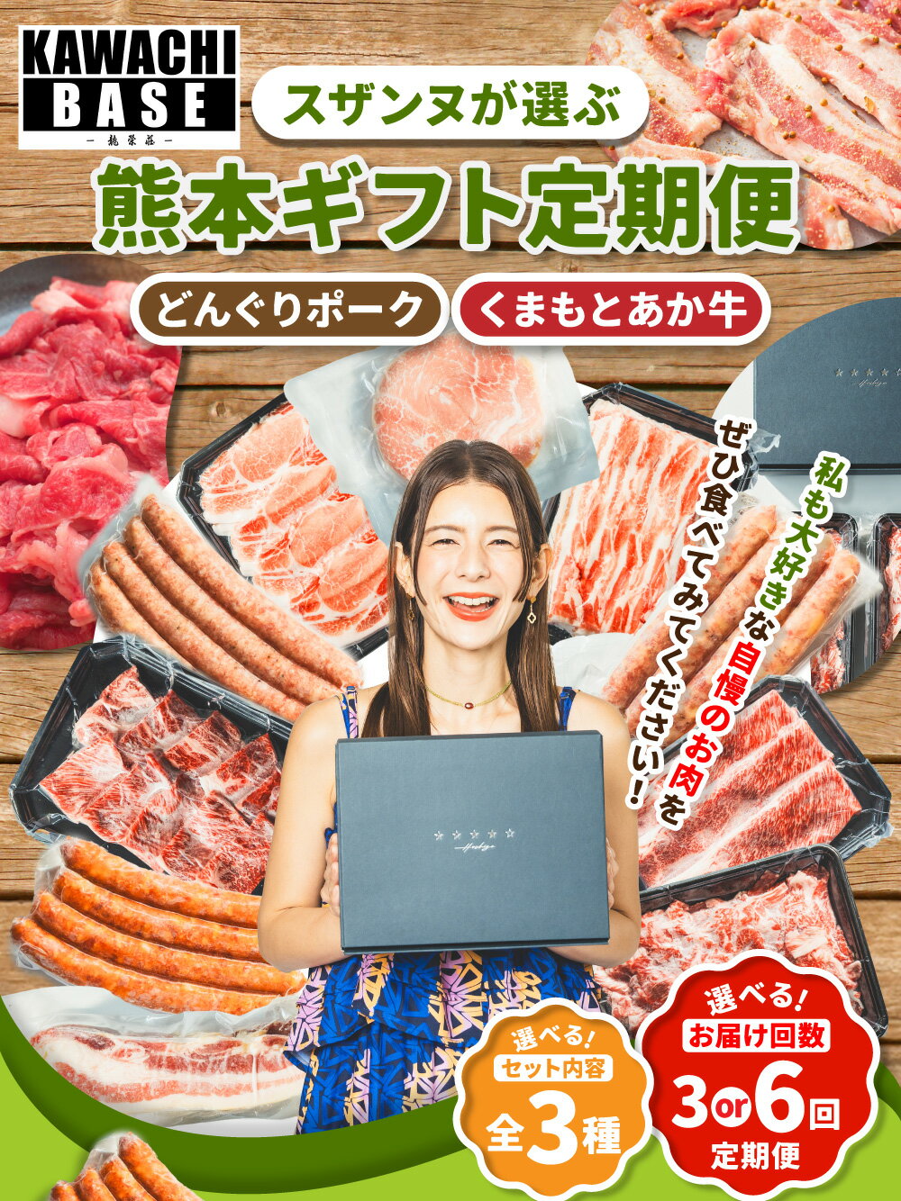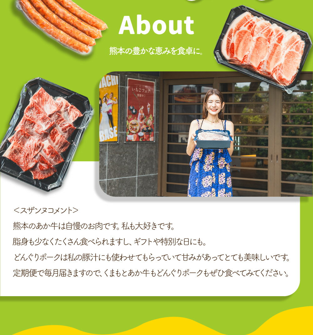 【ふるさと納税】<選べる定期便・セット内容>【年3回・6ヶ月連続定期便】スザンヌが選ぶ熊本ギフト どんぐりポーク / くまもとあか牛 / あか牛とどんぐりポークセット 1ヶ月毎 3回 6回 豚肉 牛肉 赤身 お肉 贈り物 冷凍 熊本県産 国産 九州 熊本県 送料無料