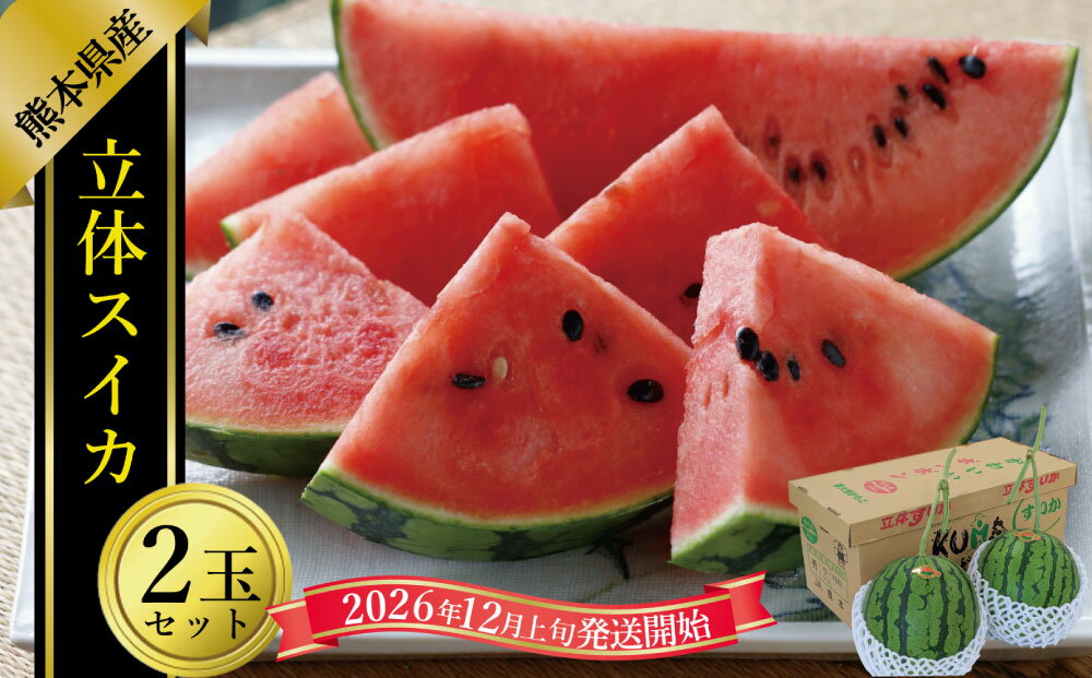 【ふるさと納税】立体スイカ 2玉入り スイカ すいか 西瓜 空中栽培 フルーツ くだもの 果物 果実 デザート ギフト 贈答 贈り物 熊本県産 国産 九州 熊本県 送料無料 【2026年12月上旬発送開始】