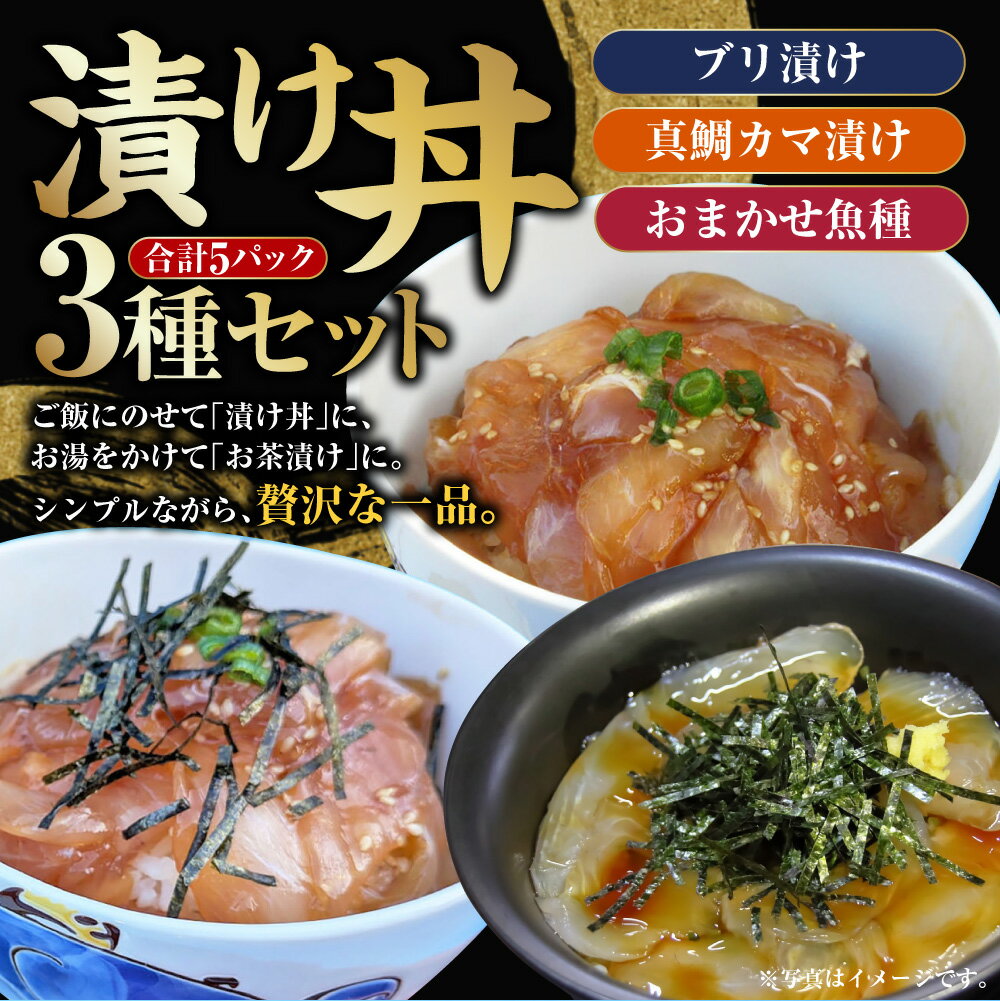 【ふるさと納税】漬け丼 3種 5パック セット (ブリ漬け 80g×2パック 真鯛カマ漬け 80g×2パック おまかせ魚種 80×1パック) 計400g 漬丼 づけ丼 漬け丼セット 漬け 醤油漬け 海鮮丼 ブリ 鰤 真鯛 鯛 鯛漬け丼 鯛茶漬け お茶漬け お刺身 刺し身 海鮮 魚介 手軽 簡単 冷凍