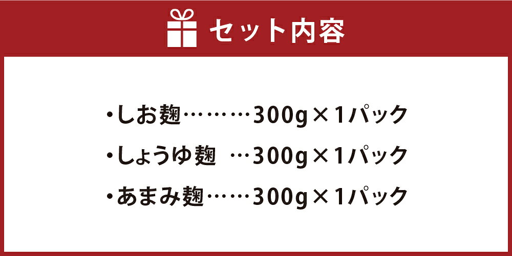 【ふるさと納税】ベーシックセット 3点入り しお麹・しょうゆ麹・あまみ麹 各1パック 計900g(300g×3パック) 米麹 米こうじ 国産米 岩塩 醤油 無添加 発酵調味料 発酵食品 着色料・保存料・化学調味料・甘味料・香料不使用 健康 冷蔵 岡山県 倉敷市 送料無料