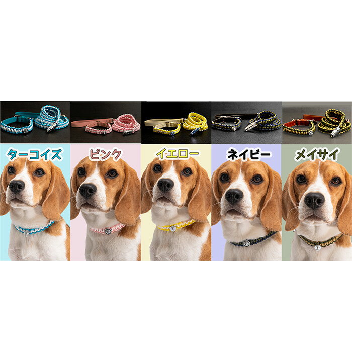 - 【ふるさと納税】No.463 犬の首輪&リードセット さんぽ用 ポンダープラス メイサイ / ペット用品 犬用品 ペットグッズ 散歩グッズ ワンタッチ 着脱簡単 ロック付き 高耐久 おしゃれ 丈夫 カラフル ハンドメイド 手作り 手編み パラコード 革 レザー 送料無料 大阪府