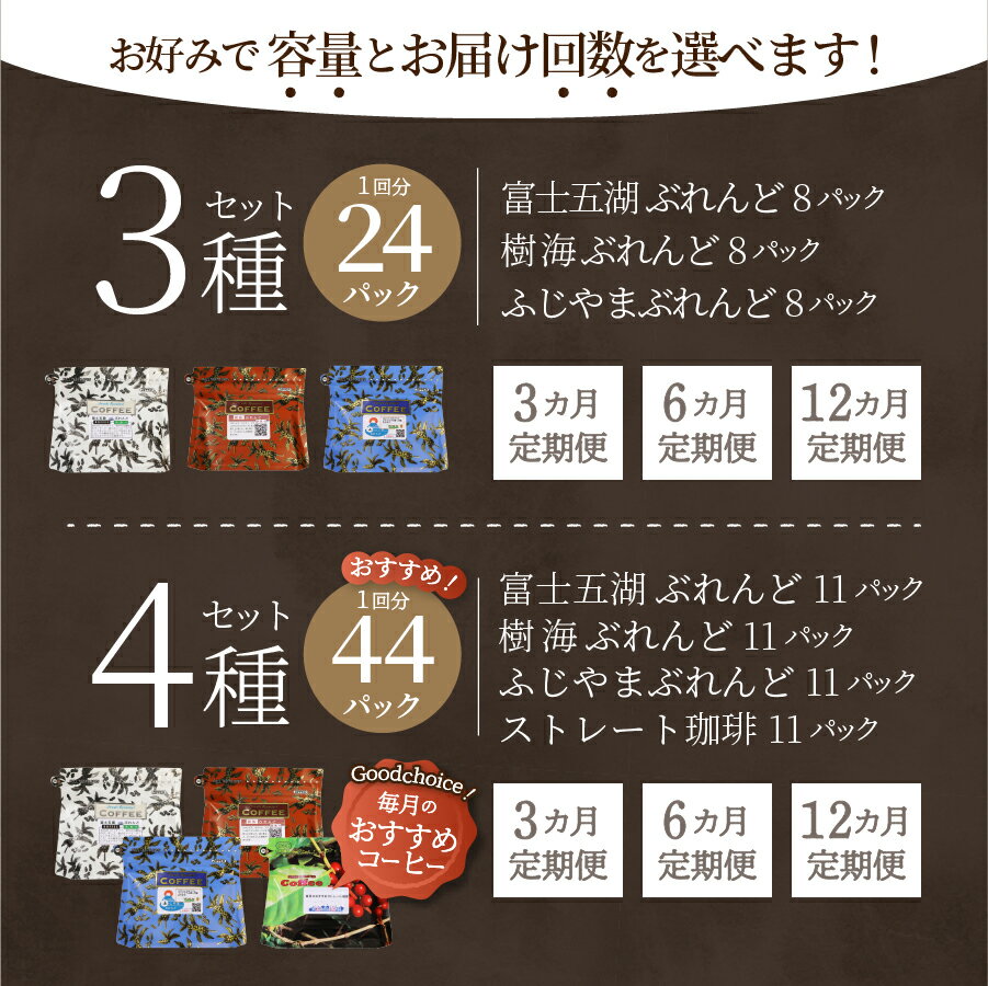 - 【ふるさと納税】 定期便 コーヒー ドリップコーヒー ドリップ 珈琲 飲み比べ セット 選べる容量 3種 4種 お届け回数 3ヶ月 6ヶ月 12ヶ月 ドリップバッグコーヒー ドリップバッグ 10g 24パック 44パック 富士山麓ぶれんど 新鮮 独自製法 中煎り~深煎り 溶岩 焙煎 ロースト