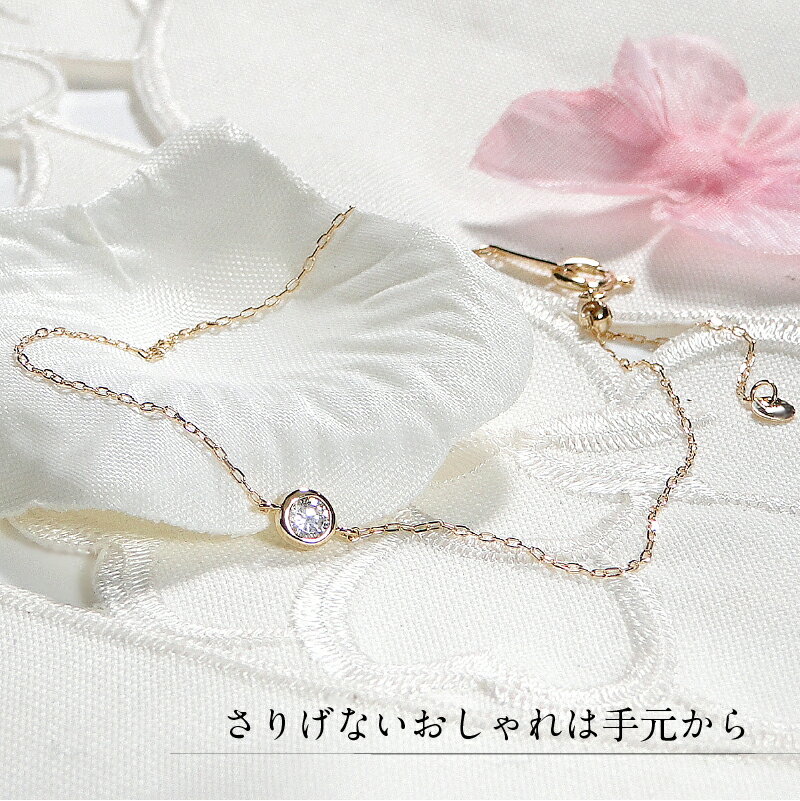 - 【ふるさと納税】< 甲府ジュエリー > ブレスレット ジュエリー レディース アクセサリー K18 イエローゴールド YG キュービックジルコニア 0.1ct 1石 1粒 シンプル ギフト プレゼント 鑑別書付 保証書付 k053-037